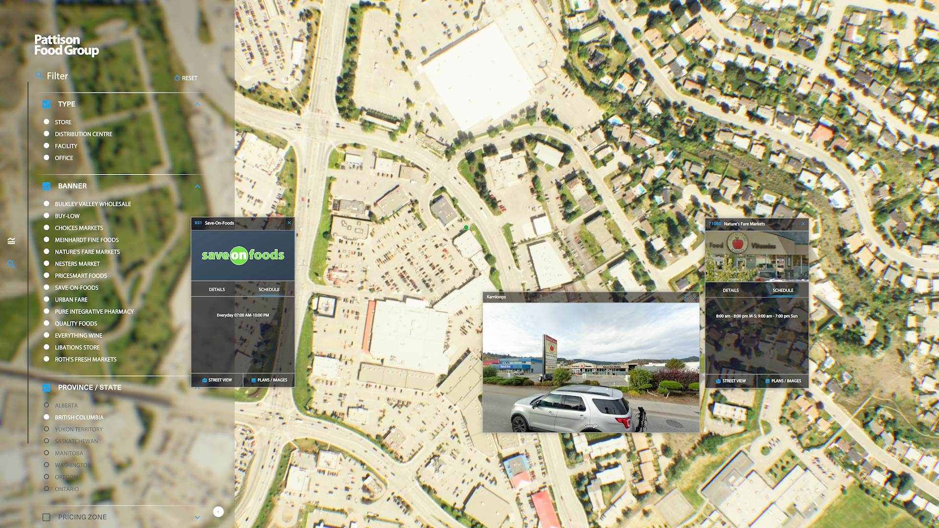 Pattison Food Group is Canada’s largest Western-based provider of food and health products, headquartered in British Columbia, Canada, with 11 retail banners operating nearly 300 food and drug retail locations through Western Canada, in Whitehorse Yukon, Washington State, and Oregon. Save on Foods project has a package of database that shows your stores location, information, and much more details in one application about the project.