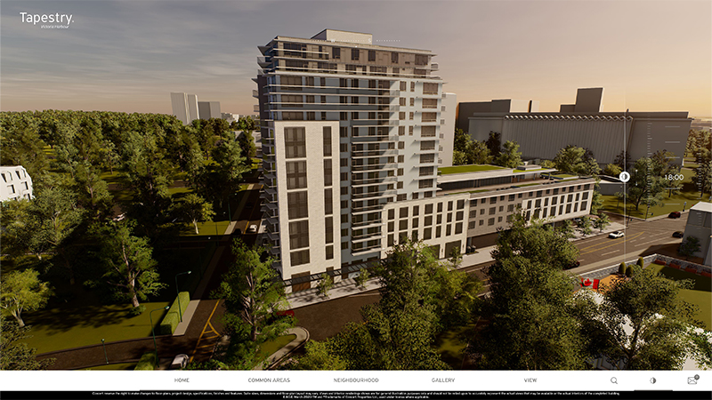 Tapestry is a senior living condo project. The building features custom lifestyle amenities and services. Located in Victoria Harbour, the location features lush parks, waterfront and great restaurants.